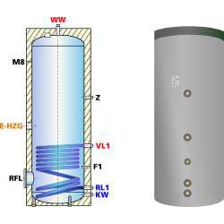 Ballon préparateur ECS spécial PAC, solaire ou pompe à chaleur, haute performance, HLS-Plus 300, avec simple registre de chauffe surdimensionné pour Pompe à Chaleur